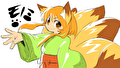 みるりるさんから戴いた、宝物。 『蹂躙されし不浄の地、ものみの丘』より、モノミです。 お祭りの一シーンを描いてるので、モノミは九尾状態です。なびく尻尾が本当に綺麗で、見とれました。 |