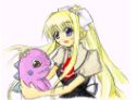 HAMAさんから頂いた観鈴絵。 恐竜が紫なんてありえない? ヌイグルミだからいーのです。 |